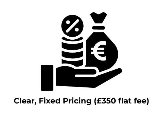 No surprises — one flat fee, £350, so you won’t be hit with hidden costs.